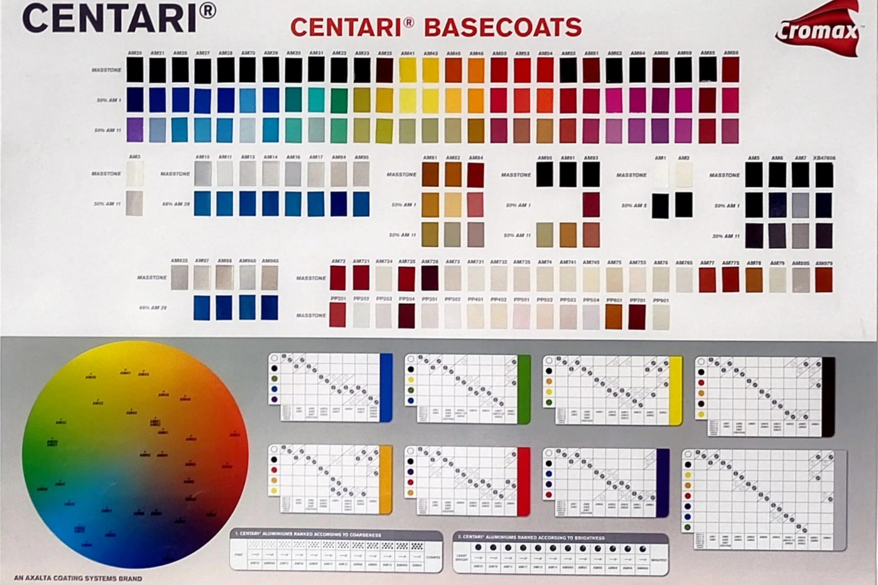 Shade swatches engineered for precise colour matching and effortless identification, empowering the auto refinish industry with accuracy, consistency, and confident results.