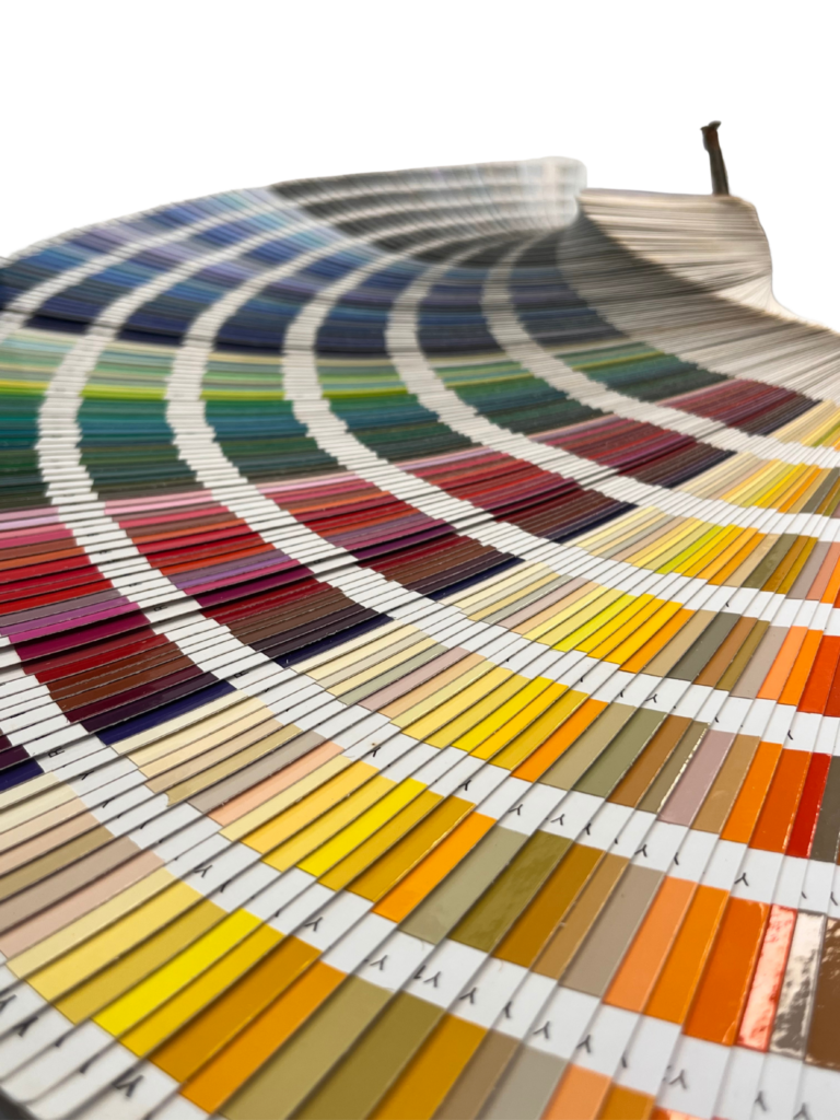 Fandecks are practical colour selection guides that help customers easily choose the right shade from a wide range of options. A single fandeck can offer up to 1200 colours, providing an extensive palette for accurate colour selection.